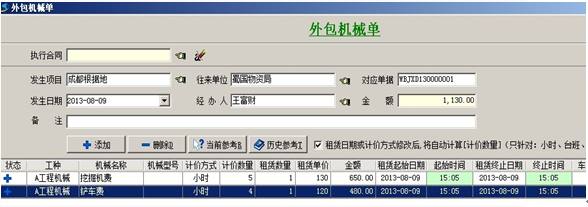 1. 【外包機械成本】一般用于統(tǒng)計工程中,租用的吊車、鏟車、挖機等大型機械設備所產(chǎn)生的成本。成本根據(jù)外包機械單來統(tǒng)計。