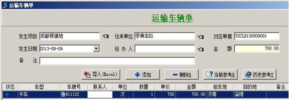 2. 【運輸車輛成本】一般用于統(tǒng)計公司租賃車輛周轉材料所產(chǎn)生的成本,成本根據(jù)運輸車輛單來統(tǒng)計。