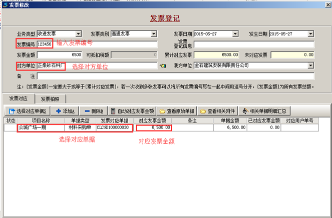 如果有發(fā)票,則進(jìn)入“發(fā)票管理”進(jìn)行發(fā)票登記,選擇“業(yè)務(wù)類型”(“收進(jìn)發(fā)票”或“支出發(fā)票”),選擇“發(fā)票類別”,輸入“發(fā)票編號”,“發(fā)票金額”等基本信息,如圖: