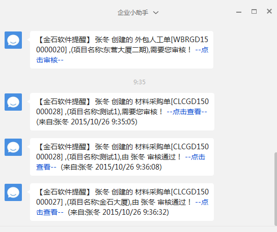 審核完成后創(chuàng)建人收到審核完成微信提醒如下圖: