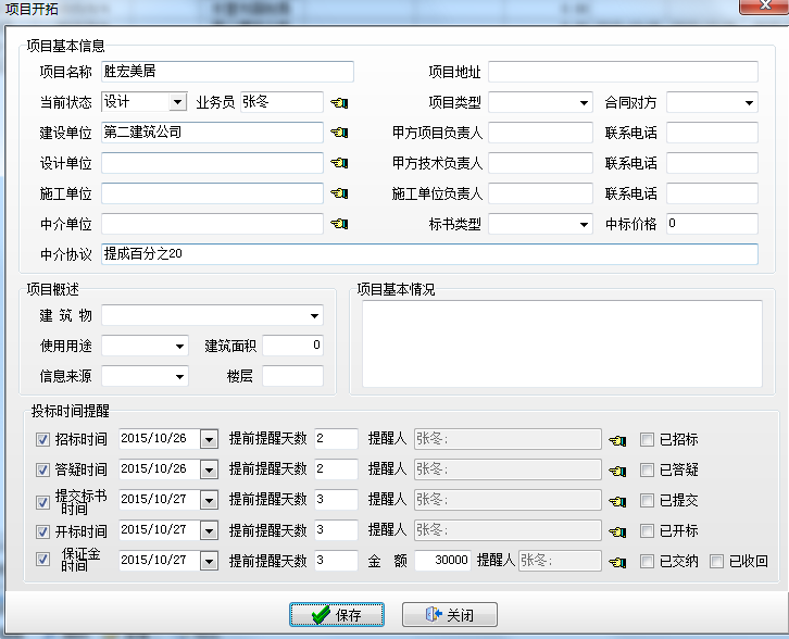在提醒中心后臺,合同提醒及項(xiàng)目開拓可設(shè)置定時(shí)提醒功能