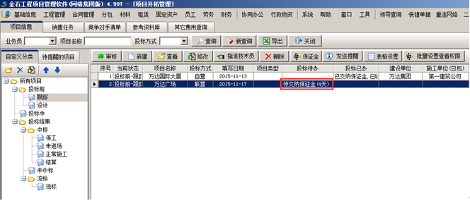 也可根據投標方式、業務員、項目狀態查詢。