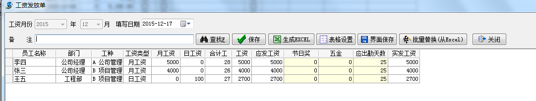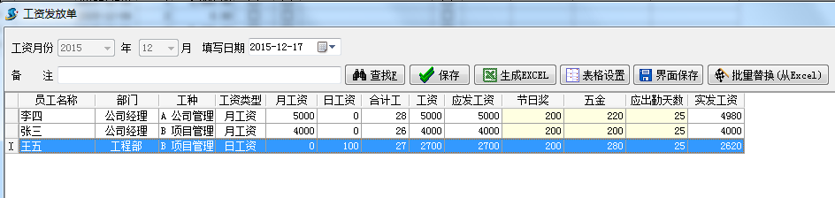 工程管理軟件在生成員工工資表之前將當(dāng)月的考勤單據(jù)以及所有的影響到員工工資的單據(jù)審核完成(工資預(yù)支單、按月預(yù)支單、員工罰款單、員工請假單、員工加班單、工資項(xiàng)目定義、個(gè)人所得稅)。