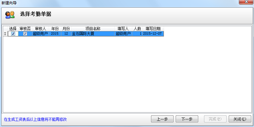 生成員工工資表時(shí)按照向?qū)нx擇審核通過的影響員工工資的單據(jù),如圖: