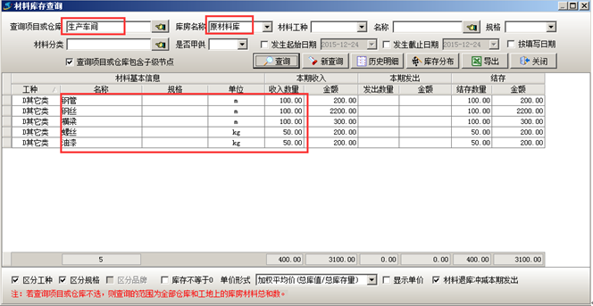 材料采購?fù)瓿芍罂稍趯?duì)應(yīng)的材料庫中查到相應(yīng)的庫存,如圖: