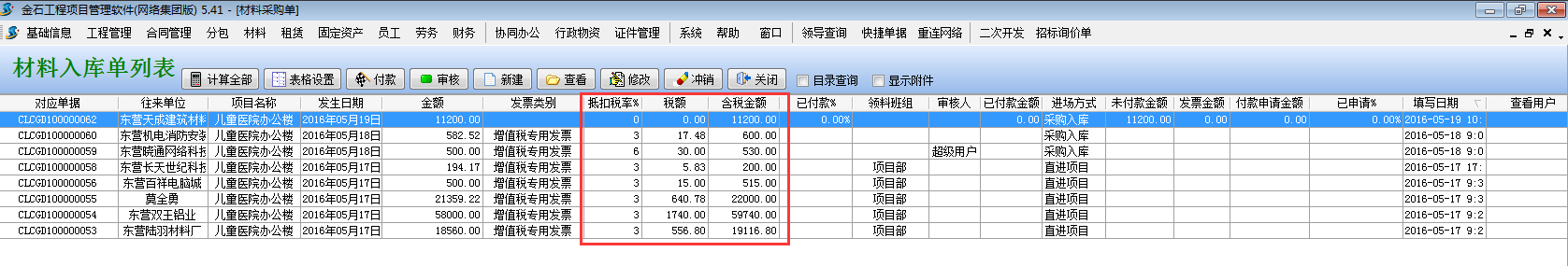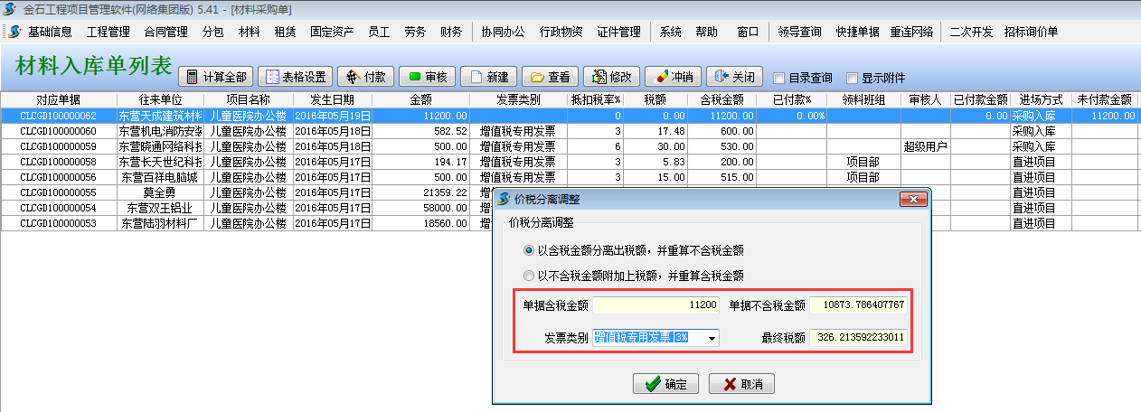 2.營改增.以前版本做的單據如何實現價稅分離調整?我們以材料入庫單(即材料采購單)為例,進行演示:
