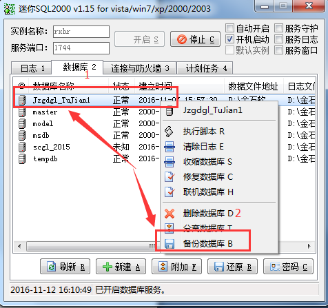1、手動備份:選擇金石項目管理軟件的數據庫文件,點擊鼠標右鍵→備份數據庫