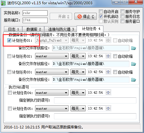 2、自動備份:選擇計劃任務→添加備份的數據庫和日期