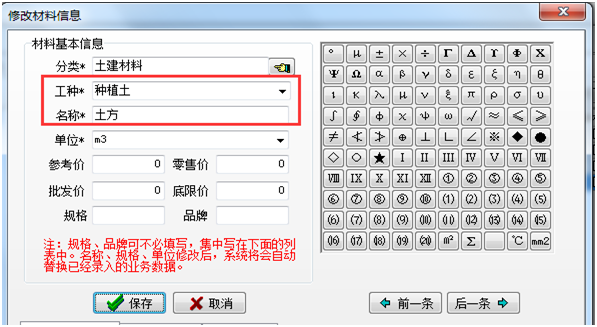 在材料維護中維護好相應(yīng)材料的工種名稱中帶有“砂石料”或“種植土”三個字