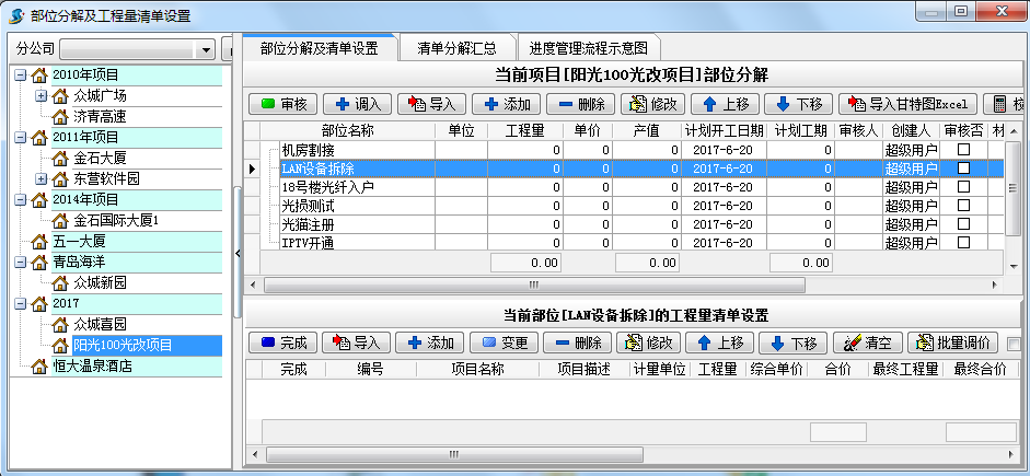 在【項(xiàng)目維護(hù)】中點(diǎn)“添加”對(duì)建立的項(xiàng)目按部位進(jìn)行分解