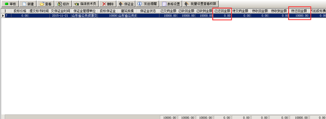 投標保證金還回給掛靠單位。項目開拓中會提示“待還回金額”。如圖所示: