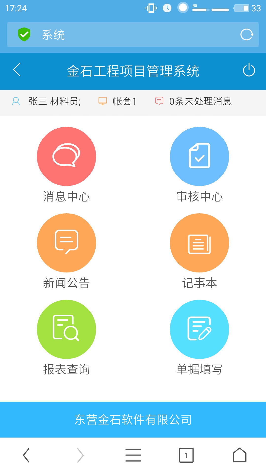 (3) Browser端主要應用在移動設備終端,目前已經與微信無縫整合,只需安裝微信就可正常使用各項功能,主要用于業務單據審核、微信消息提醒、現場進度填報、部分報表資料文檔查詢、部分單據填寫等。
