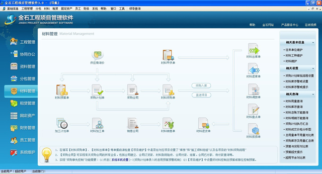 本軟件是金石軟件公司以眾多施工企業管理現狀為出發點,深入了解施工現場,經過七年地不斷完善與努力,打造成為一款成熟、靈活、實用性極高的信息化內控管理平臺。軟件以成本控制為核心,以資金管理為主線,全面解決項目管理難題,提升項目管控能力。對工程的投標管理、中標后的進度管理、分包管理、采購招標、材料管理、租賃管理、固定資產管理、員工管理、勞務管理、資金管理、押金管理、發票管理、稅金核算、聯營管理、文檔資料管理、物資管理、安全質量管理、證件管理、車輛管理、工程結算、等進行全方位管理,并提供強大的OA功能,能夠實現各部門之間的數據共享及業務單據網上簽批審核。并且提供了強大的自定義工作流驅動和各種流程開關,企業可根據自己情況自行設定,從而規范企業管理、讓工作流程正歸化、簡單化。通過工作流,讓信息送審、審批更貼近日常公司管理模式,申請人可隨時看到當前業務的審批進度和各領導的審批意見。