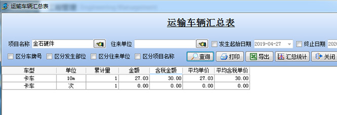 用戶也可以自由查詢成本的明細(xì)。可以查詢【運(yùn)輸車輛匯總表】。