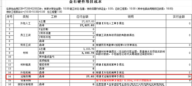 查詢項(xiàng)目為【金石大樓】的運(yùn)輸車輛成本。