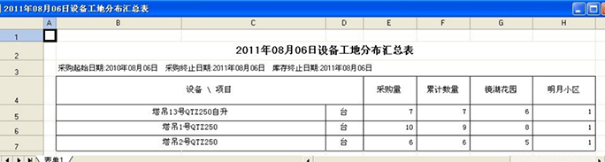 除了設備調撥單列表之外,系統中還有更全面的設備工地分布表。可以非常直觀的看到企業的固定資產在各個工地的分布情況。