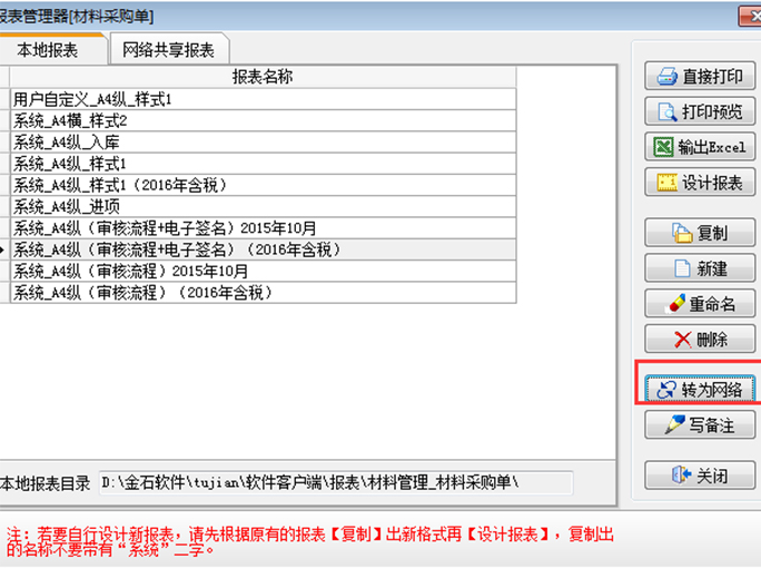 表格在存儲時,可選擇存儲到本地、存儲到網絡,2個選項分別代表: