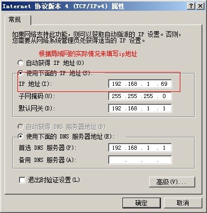 (五) 局域網的訪問:首先在服務器端設定好固定的IP地址,如下圖:
