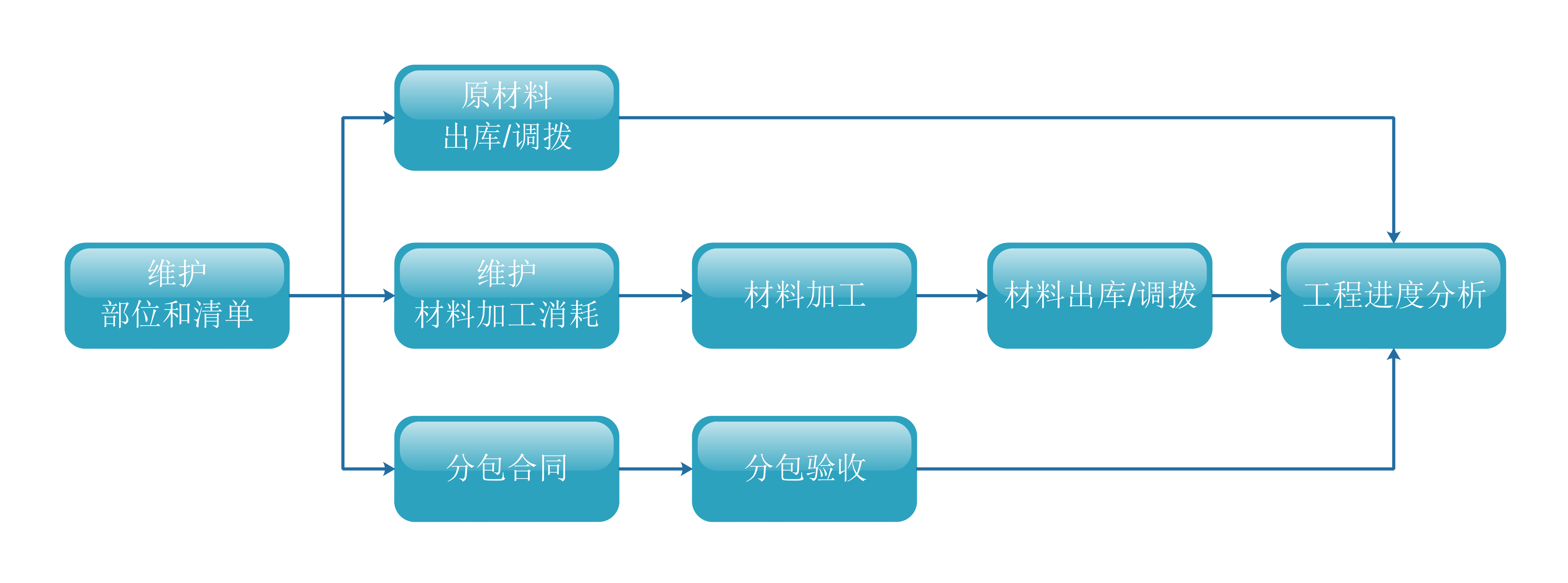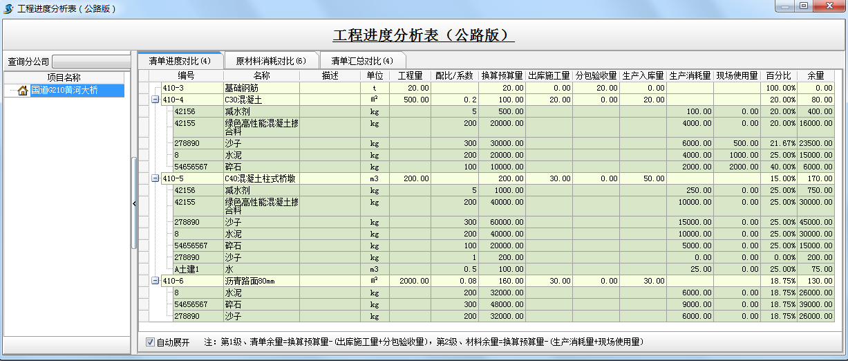 在施工進(jìn)度計(jì)劃的基礎(chǔ)上,即(工作部位分解)的基礎(chǔ)上,編制材料需求計(jì)劃、建立材料成本維護(hù)、材料加工清單、材料出庫單或調(diào)撥單關(guān)系明細(xì),產(chǎn)生詳細(xì)的進(jìn)度比較和詳細(xì)的歸納比較。
