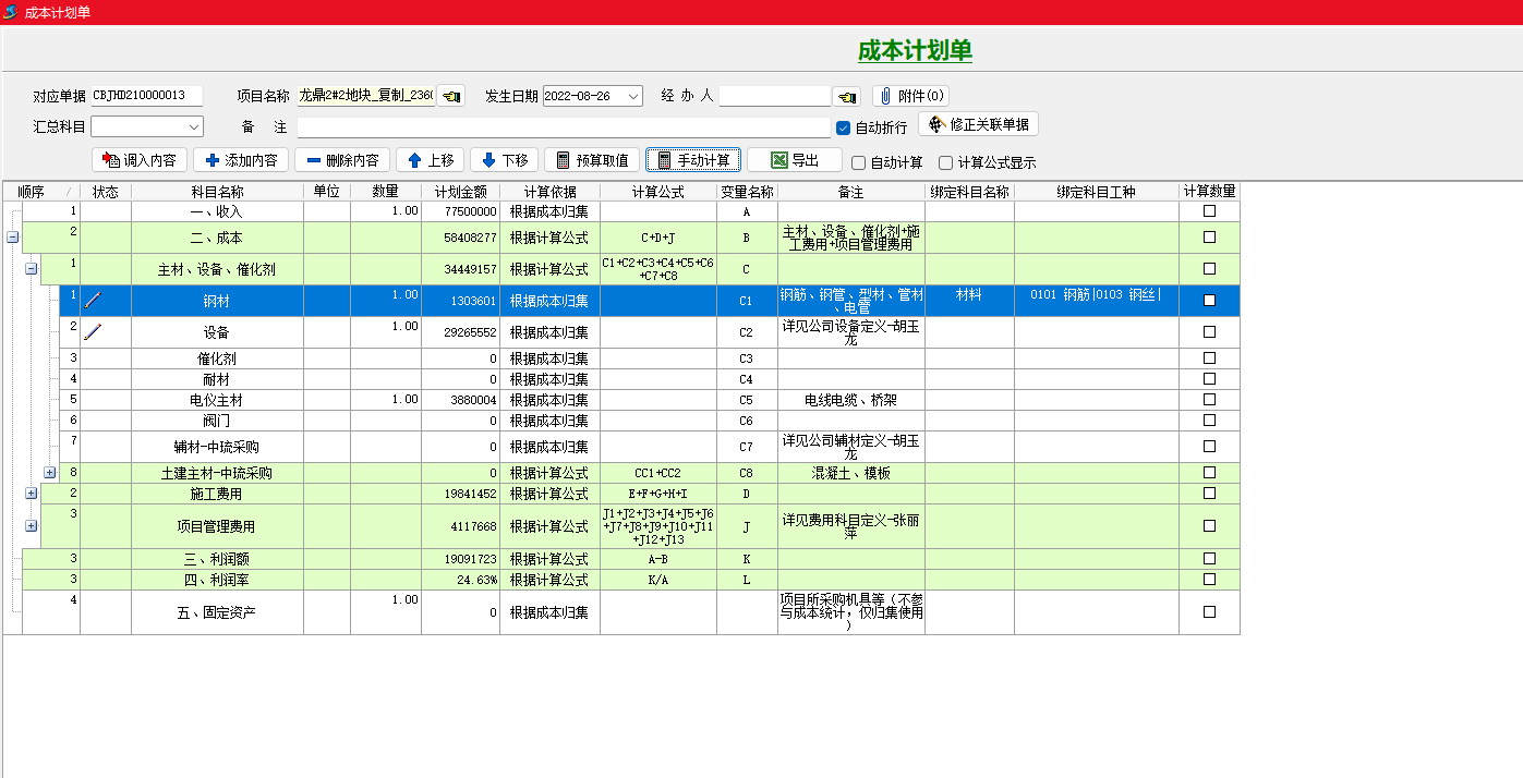 使用該功能需開啟系統全局設置“預算啟用成本計劃控制”