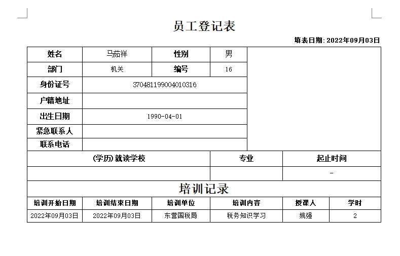金石工程項目管理軟件可以填寫員工培訓(xùn)記錄,并生成到員工維護(hù)。