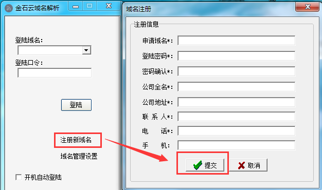 安裝完成后,在桌面打開快捷方式,在彈出的對(duì)話框中注冊(cè)新域名。然后使用新域名登陸。
