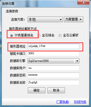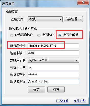 在做連接設(shè)置時(shí)直接選擇使用IP或計(jì)算機(jī)名稱,不要選擇金石云解析。如下圖是金萬維解析: