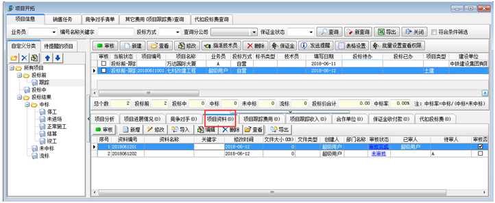 項目狀態建好之后,有需要投標的項目創建項目開拓信息。