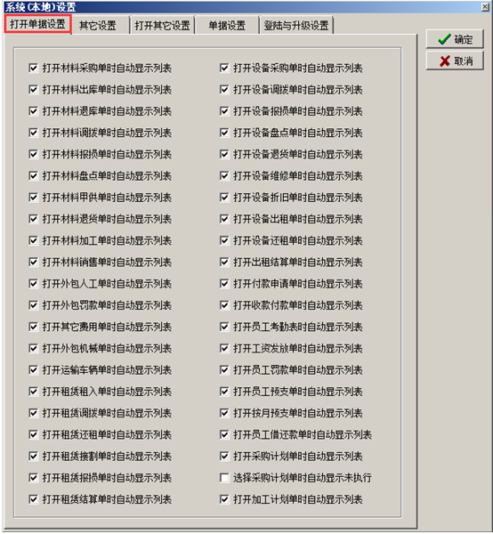 進(jìn)入系統(tǒng)的“系統(tǒng)維護(hù)”-“系統(tǒng)全局設(shè)置”彈出系統(tǒng)全局設(shè)置的對(duì)話框,點(diǎn)擊“合同設(shè)置”,在對(duì)應(yīng)的復(fù)選框打鉤代表合同受對(duì)應(yīng)開關(guān)的控制,如圖: