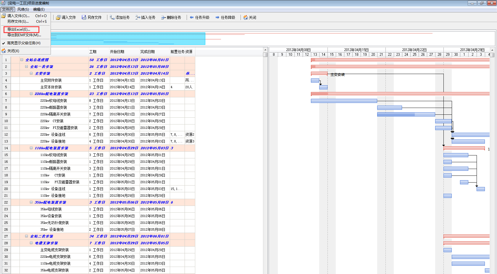 進度管理-利用MS Project等軟件生成的Excel導入【部位分解和工程量清單】