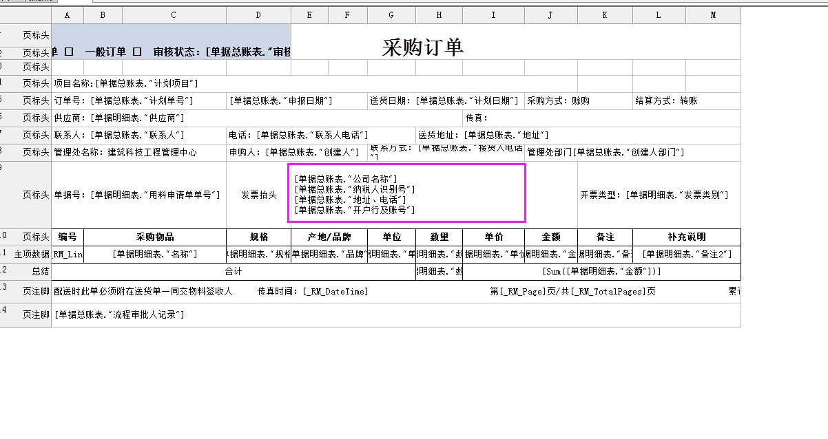 設(shè)置好項目開票信息,打印采購訂單時設(shè)置好對應(yīng)報表,會自動顯示開票信息。
