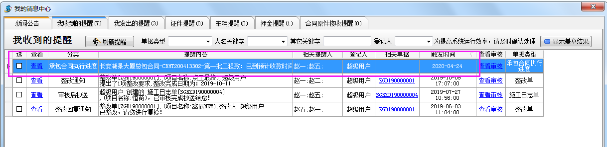 到期了相關(guān)提醒人在消息中心會收到提醒。