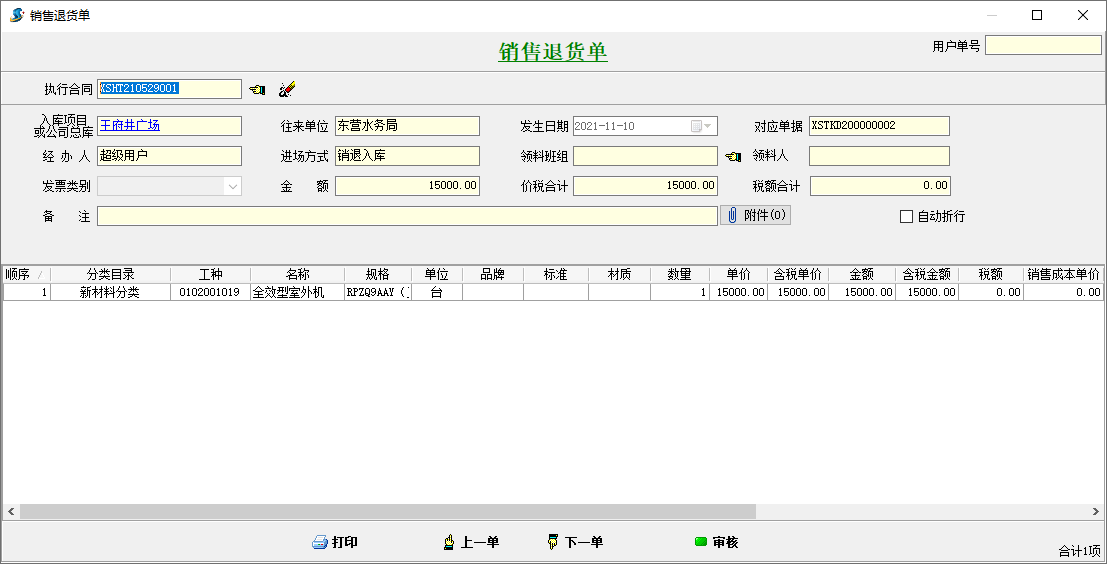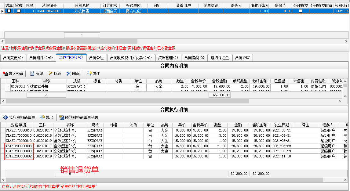 純粹的銷售業(yè)務中,增加了【銷售退貨單】。目的是為了完善銷售合同的執(zhí)行明細,補足原先銷售業(yè)務出現(xiàn)退貨時,無法直接在銷售合同【合同內(nèi)容明細】查看退貨的材料明細情況。