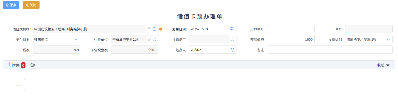 審核完成后,后續做儲值卡充值時可以關聯該單據。