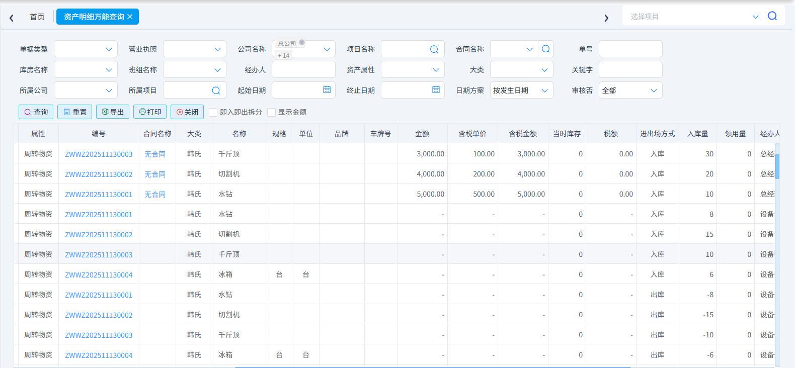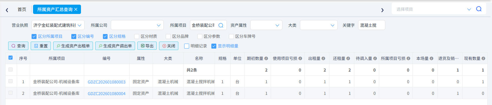 資產(chǎn)歸屬權(quán)項(xiàng)目的庫存量及租還情況進(jìn)行精準(zhǔn)查詢