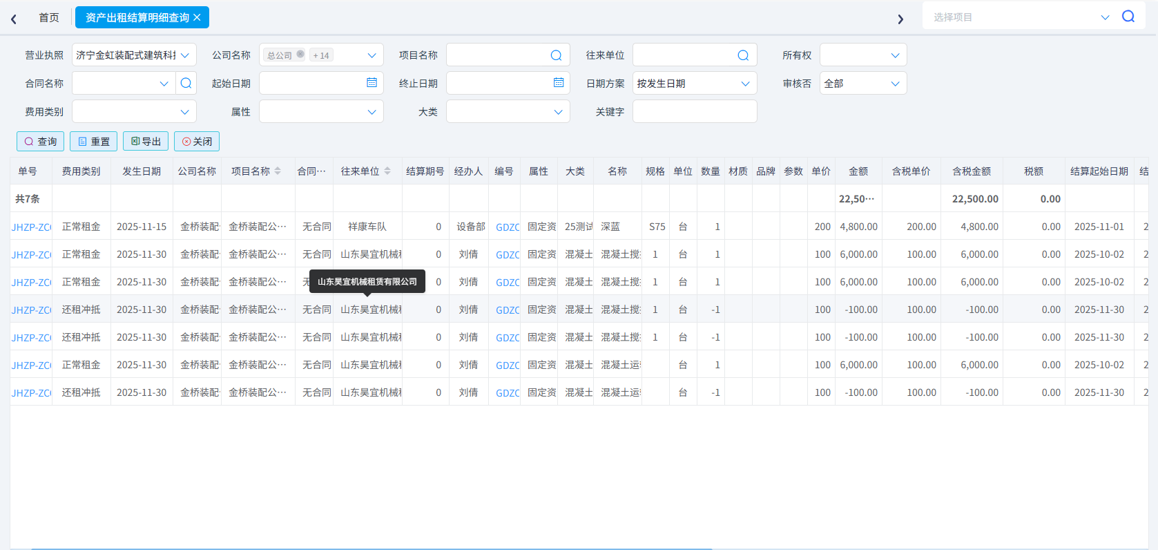 資產(chǎn)出租結(jié)算是企業(yè)在租期結(jié)束時(shí),與承租方完成租金、押金及相關(guān)費(fèi)用(如維修費(fèi)、違約金等)的核對(duì)、支付與清算的流程明確計(jì)租方式和租賃起始、截止日期可自動(dòng)生成計(jì)算租費(fèi)。