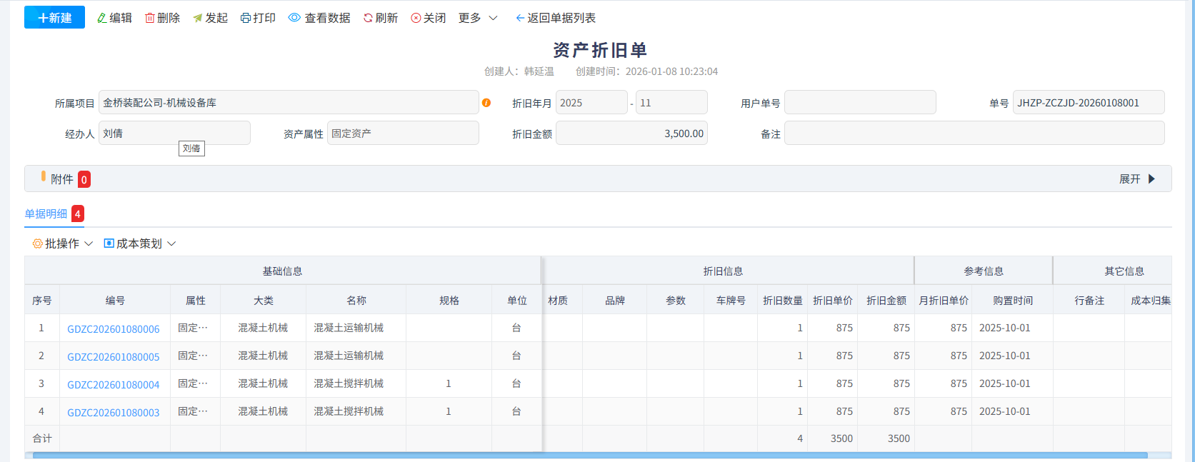 有關(guān)折舊成本信息項(xiàng)?:包括原值、折舊方法、累計(jì)折舊、凈值及殘值。