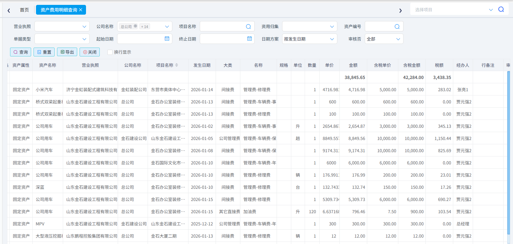(6)資產(chǎn)費(fèi)用明細(xì)查詢