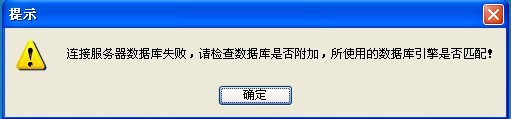 如果彈出錯提示:“連接服務器數據庫失敗,請檢查數據庫是否附加,所使用的數據庫引擎是否匹配”