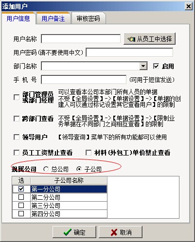 B:公司授權判斷,是指判斷當前用戶是屬于總公司還是子公司,如果屬于子公司,判斷當子公司是否有項目授權。用戶所屬公司的設置和子公司項目授權的設置如下圖: