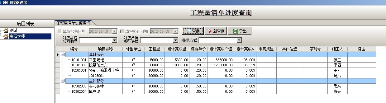 選中相應的項目,點查詢,查看工程量清單進度
